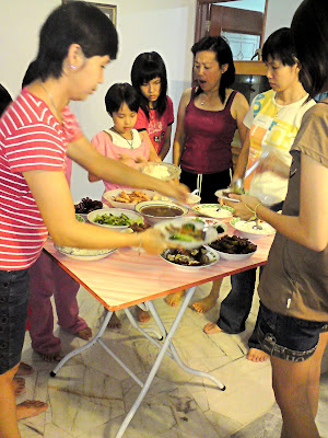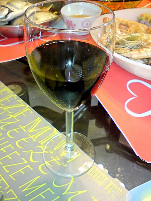so finally dinner time around 1800 hours! some1 brought red wine as well (i dunno who) and my uncle asked me wan onot. Without thinking i answer "sure"..as a result i drank 3 glasses of red wine. heh i guess i kinda good in this stuff. i wasn't drunk yet and not even feel any heat or sweat coming our from my body..lol