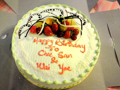 an hours after dinner, is cake time! lol..FYI, 15th jan is my sis birthday and 19th jan is my cousin birthday. both of them born on same years. tat y we make d celebration on the same day.